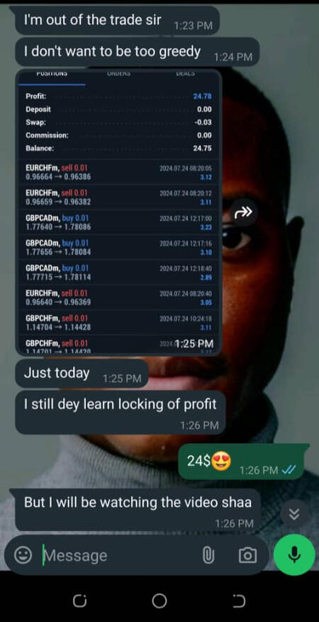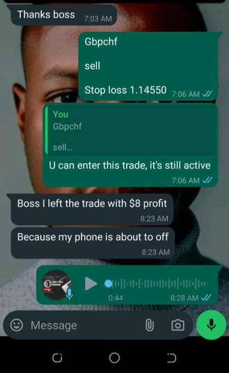 THE STORY ONLY CHANGE WHEN I DECIDED TO TAKE CONTROL OF MY FINANCIAL LIFE AND LEARN A SKILL PROFITABLE AND FOREX WAS THE WAY FOR ME AND AM WILLING TO TEACH JUST A FEW FOR FREE. NO PAYMENT FOR REGISTRATION, YOU WONT EVEN USE REAL MONEY TO PRACTICE DURING YOUR TRAINING